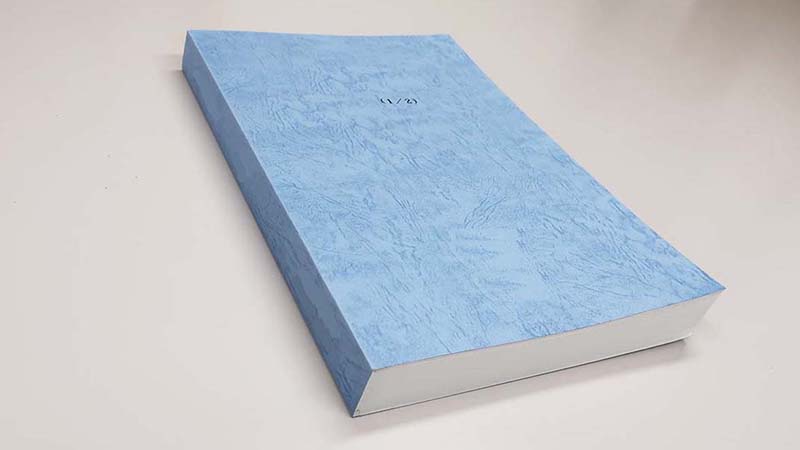 二つ折り製本 2021.06.30 2021.06.01 二つに折った図面の背と背を貼り合わせた製本方式です 。 図面が見開き状態になる為、とても見やすいです。 表紙に文字の印刷や箔押しする事も可能です。表紙の色も選べます。 詳しくはお問い合わせください。